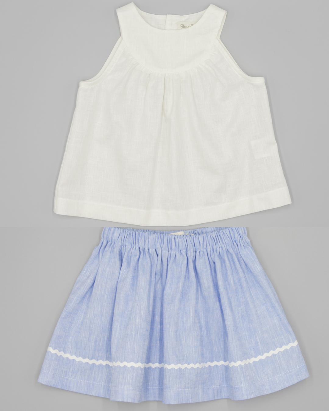 Linen Blouse / Blue Skirt Set