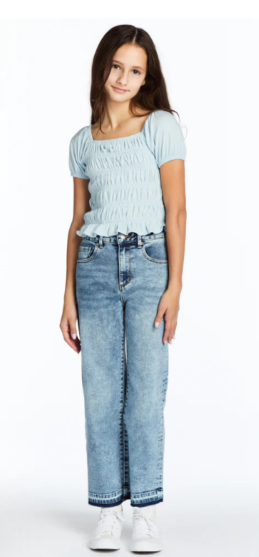 Step into Style with Tractr's High Rise Wide Leg Straight Crop Jeans